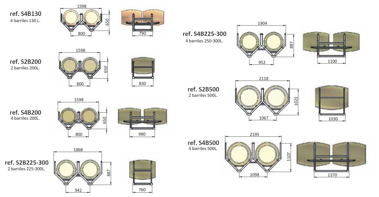 Como pueden apreciar en el siguiente gráfico, podemos fabricar una gran variedad de Racks incluso personalizarlos para barriles especiales: